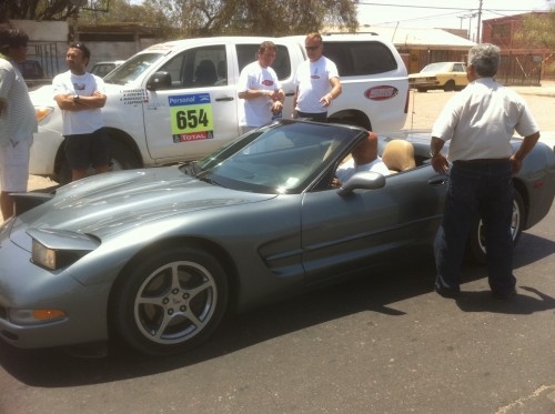 La pièce défectueuse ne se change jamais, continue Ronan, et donc, nous n’en avions pas dans le camion SMG. Nous sommes donc partis en ville ce matin, sillonner les rues pour trouver un garage et un moteur V8 5,7l quand soudain, nous avons vu un Gentleman driver au volant d’une Corvette cabriolet avec le même moteur que le nôtre. C’est un coup de chance extraordinaire, il a une superbe propriété non loin d’Arica et une vingtaine de voitures et a bien voulu nous céder les pièces nécessaires !